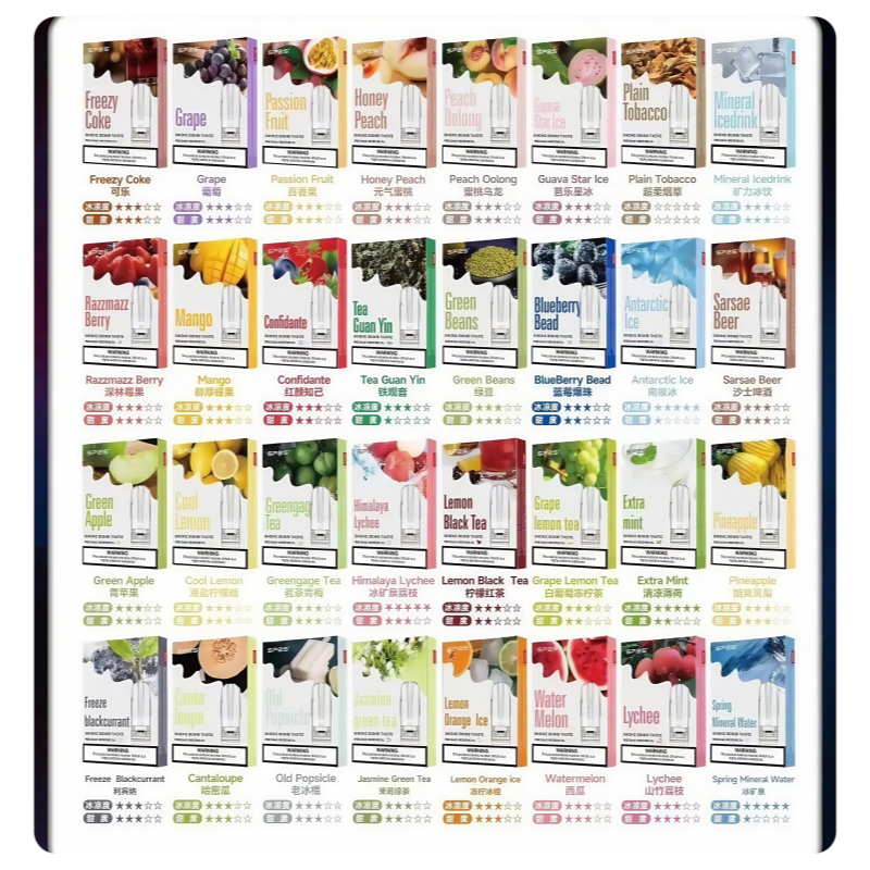 SP2S電子煙致力於為用戶帶來最優質、最安全的吸煙替代品,無論您喜歡涼爽的薄荷還是濃郁的水果味,SP2S一代煙彈都能滿足您的味蕾需求。SP2S 煙彈超過30種不同口味,從超涼到不涼,SP2S思博瑞每一口都是精心調配的藝術品,盡情探索vape極致口感。